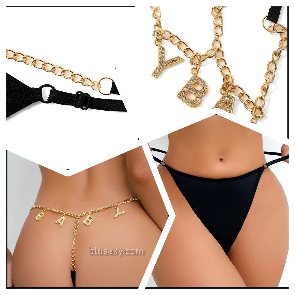 Lingerie String tanga avec breloques dorées Sexy pailletée Baby Diamant