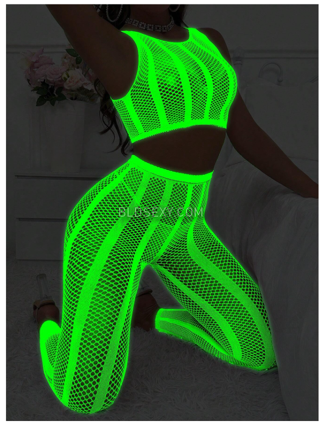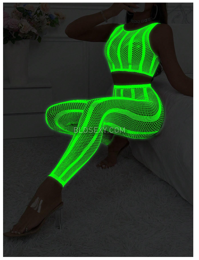 Ensemble de Crop Top maille Gym sexy & Legging pantalon skinny Fit Blanc Fluo